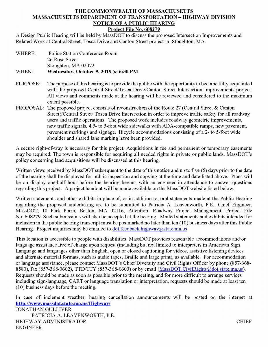 Central Street, Canton Street and Tosca Drive Intersection Improvements 2022